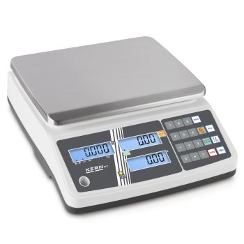 Butiksvægt KERN RPB er udstyret med tre separate displays til visning af vægt, stykpris og totalpris. Vægten har 10 direkte knapper til PLU’er (forprogrammerede priser/enheder) og giver dermed hurtig adgang til de mest anvendte varer. Som ekstraudstyr kan vægten udstyres med batteri, hvilket gør den ideel til mobil brug – eksempelvis på markeder.