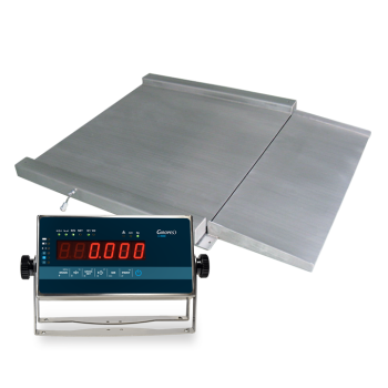 Baxtran RGI gulvvægt i rustfri stål med IP67 beskyttelse. Velegnet til industri og lager hvor man søger en billig vægt inkl. opkørsels rampe og display.