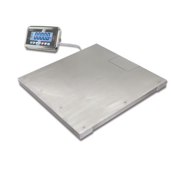 Denne gulvvægt består udelukkende af rustfrit stål og bøjer ikke pga. det stærke materiale. Pladen holdes ligeledes sammen af skruer af rustfrit stål og er svejset sammen, IP68. Det er også muligt at bestille vægten uden analyseapparatet, som betegnes IP65.