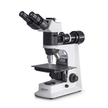 KERN OKM metallurgisk mikroskop med reflekterende lys er ideelt til materiale- og overfladetestning. Den kraftfulde, kontinuerligt dæmpbare 30W halogenbelysning sikrer optimal belysning. Et indbygget filterhjul med 5 forskellige filtre (blå, grøn, gul, grå og blank) gør det nemt at skifte farvefilteret og hurtigt opnå en anden kontrast. Mikroskopet er udstyret med ""lang arbejdsafstand"" objektiver, der også muliggør observation af tykkere prøver. Derudover leveres OKM som standard med en enkel polariserende enhed.