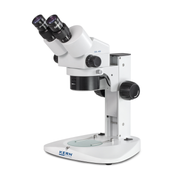 KERN OZL 45 stereomikroskop har en kontinuerlig zoom på op til 50x. De højkvalitets HSWF (high super wide field) okularer sikrer, at øjnene belastes minimalt, hvilket gør mikroskopet meget velegnet til langvarig brug, selv for brugere af briller. Mikroskopet leveres med 10 W halogenbelysning, både ovenfra og nedefra.